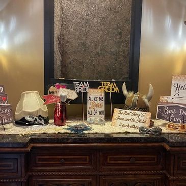 Our premium prop package includes an assortment of glasses, signs, props on sticks, boas, hats, and more.